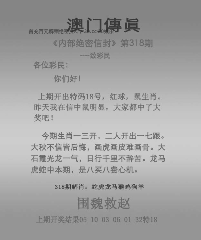 | 317期:🤑🤑三头中特🤑🤑【014】开鼠18准 |